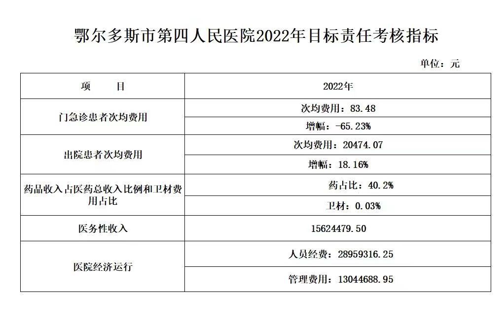 鄂尔多斯市第四人民医院2022年目标责任考核指标