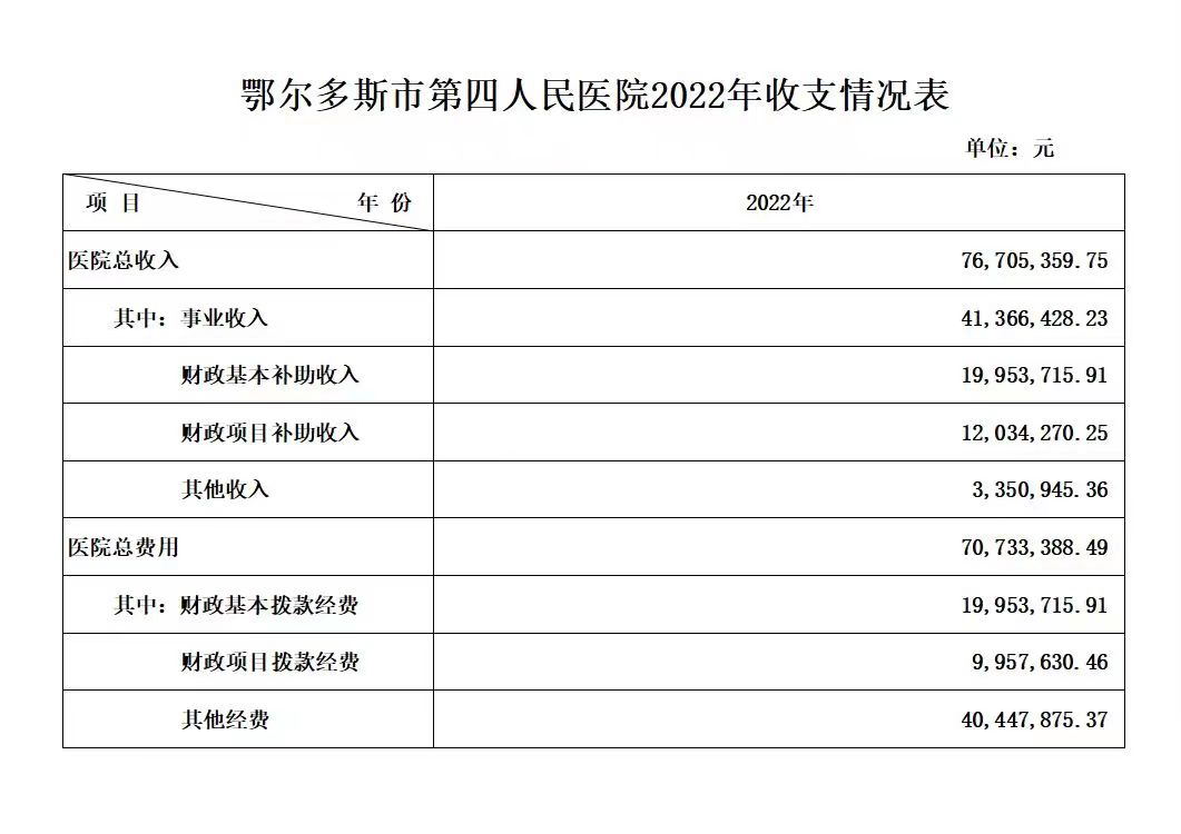 鄂尔多斯市第四人民医院2022年收支情况表